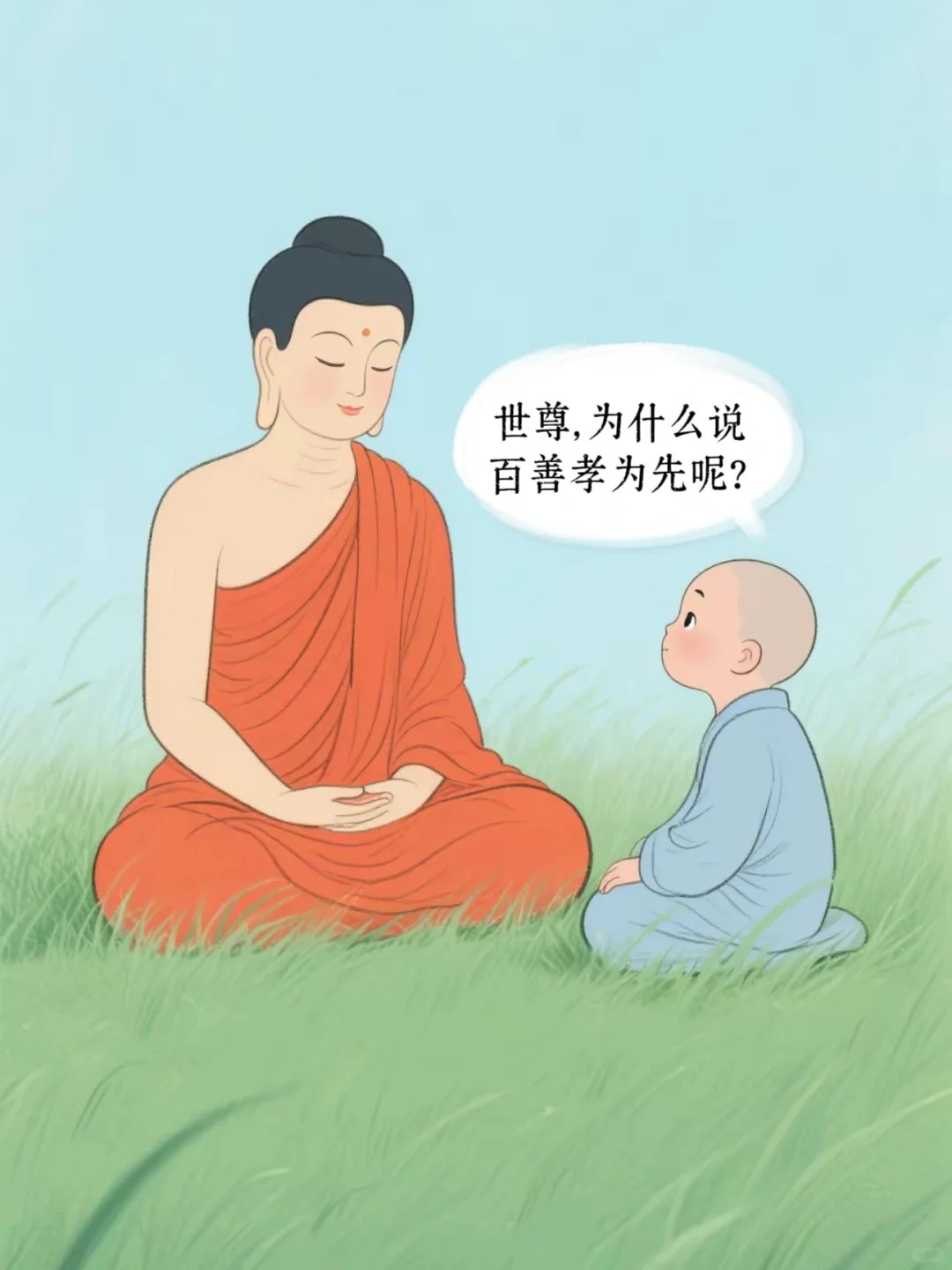 在《贤愚经》中,佛陀开示阿难:出家在家,慈心孝顺,供养父母,计其功德,殊胜难量。所以者何?我自忆念过去世时,慈心孝顺,供养父母,乃至身肉济救父母危急之厄。以是功德,上为天帝,下为圣主,乃至成佛,三界特尊,皆由是福。